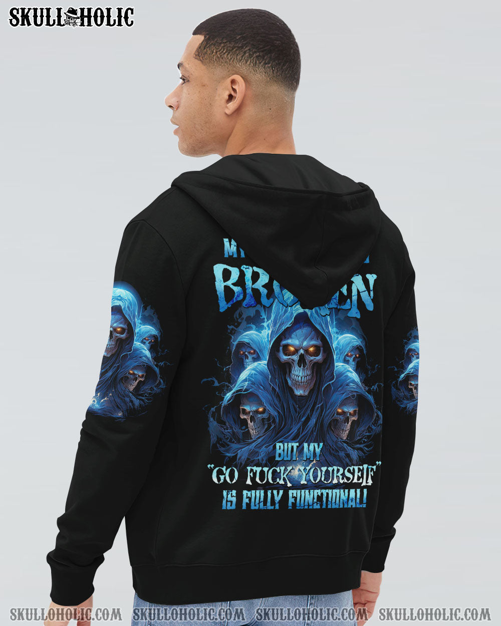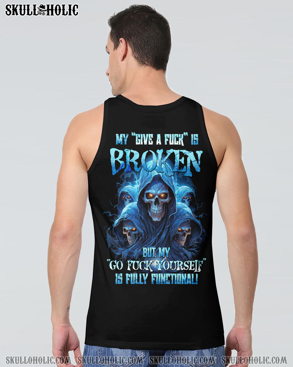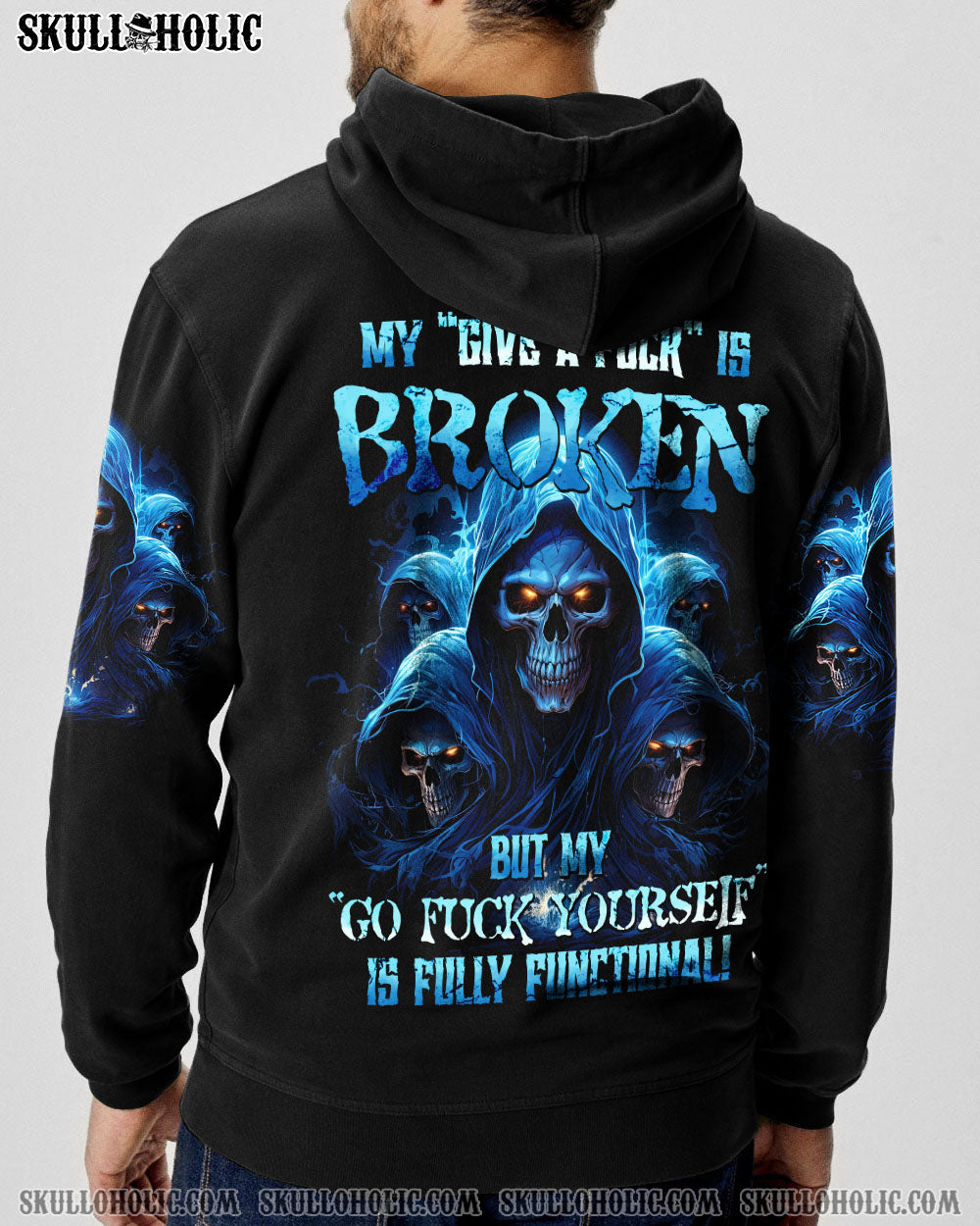Unleash your fearless self-expression with our MY GIVE A F IS BROKEN ALL OVER PRINT shirt. Featuring a fierce design of a skull engulfed in flames and a bold declaration, this shirt is a bold statement of authenticity. Embrace your individuality and make a lasting impression wherever you go. Dare to be different.