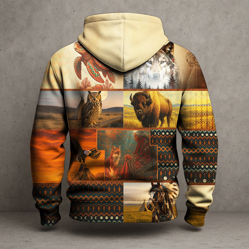 Native Heritage - The Chief Spirit Hoodie in Red & Blue, Symbol of Freedom and Pride 3