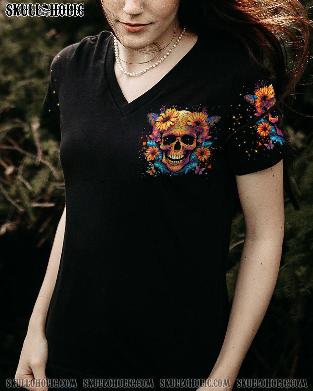 SHE IS SUNSHINE SUNFLOWER SKULL ALL OVER PRINT - YHLN1605231