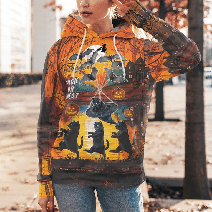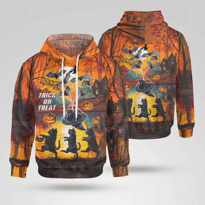 SPOOKY HALLOWEEN BLACK CAT TRICK OR TREAT 3D ALL OVER PRINTED HOODIE – TEASEARCH3D 070921
