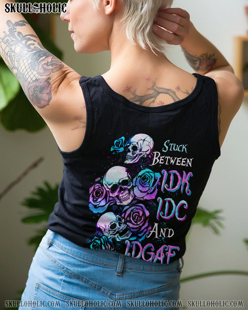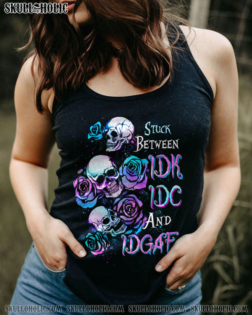 STUCK BETWEEN IDK IDC AND IDGAF 3 ROSE SKULLS ALL OVER PRINT - TLTW2801233