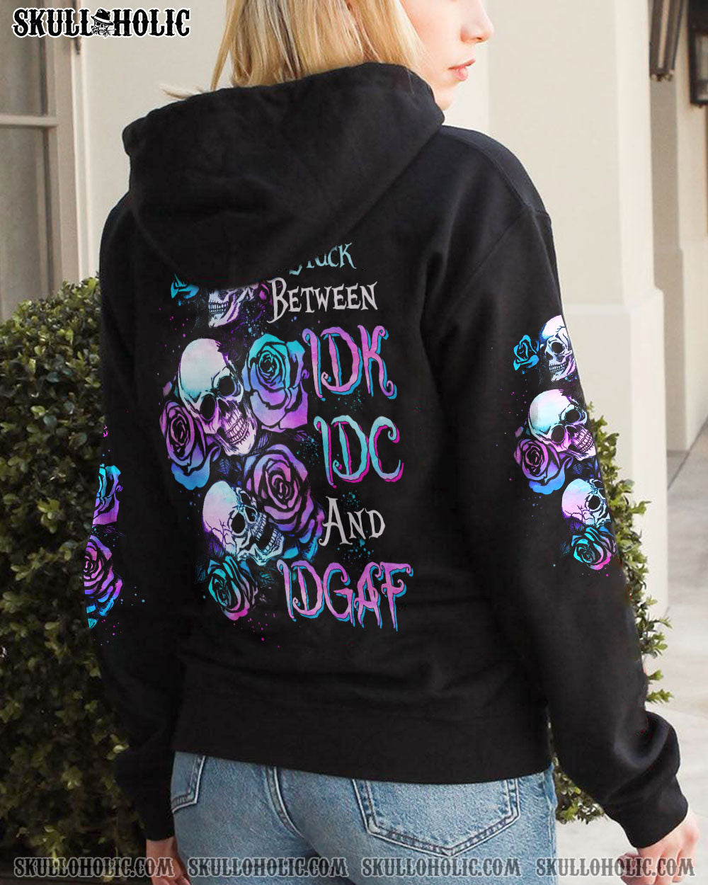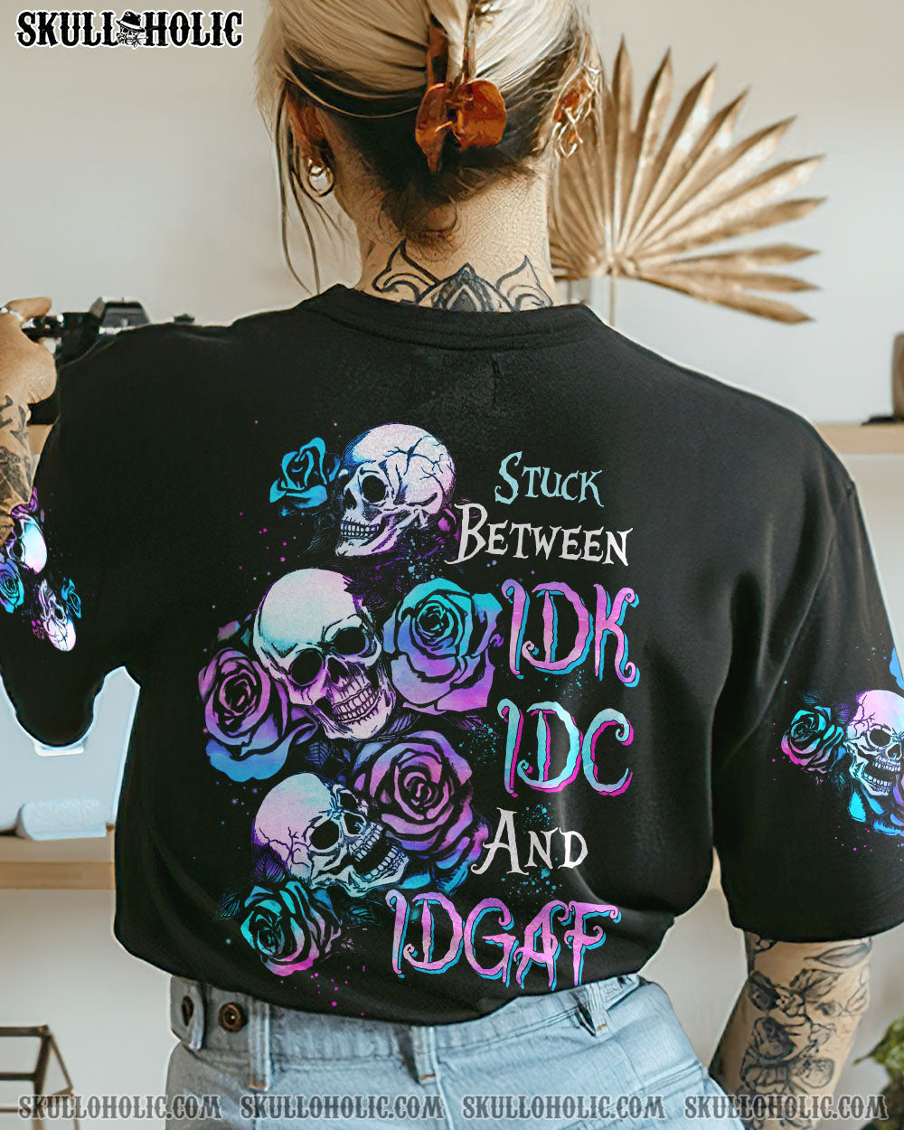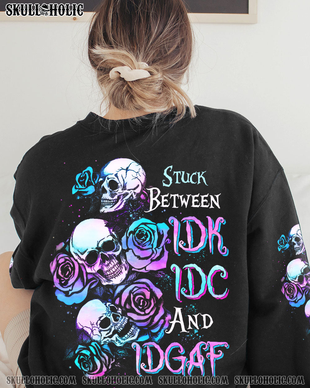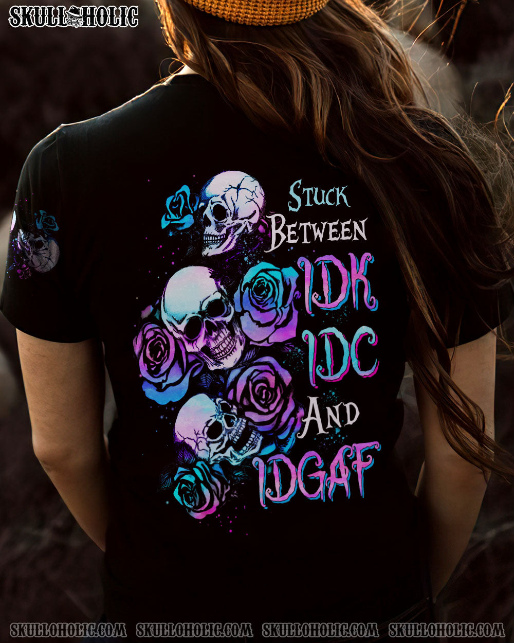 STUCK BETWEEN IDK IDC AND IDGAF 3 ROSE SKULLS ALL OVER PRINT – TLTW2801233