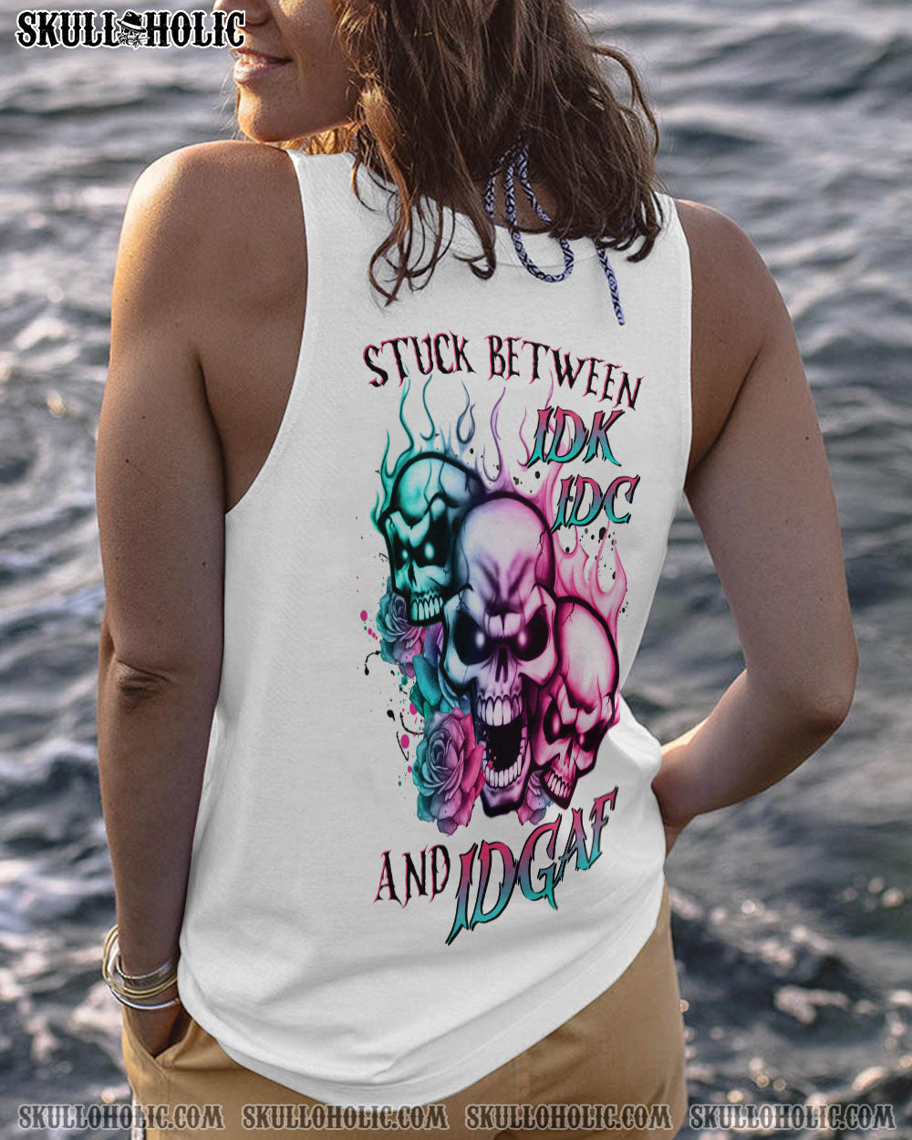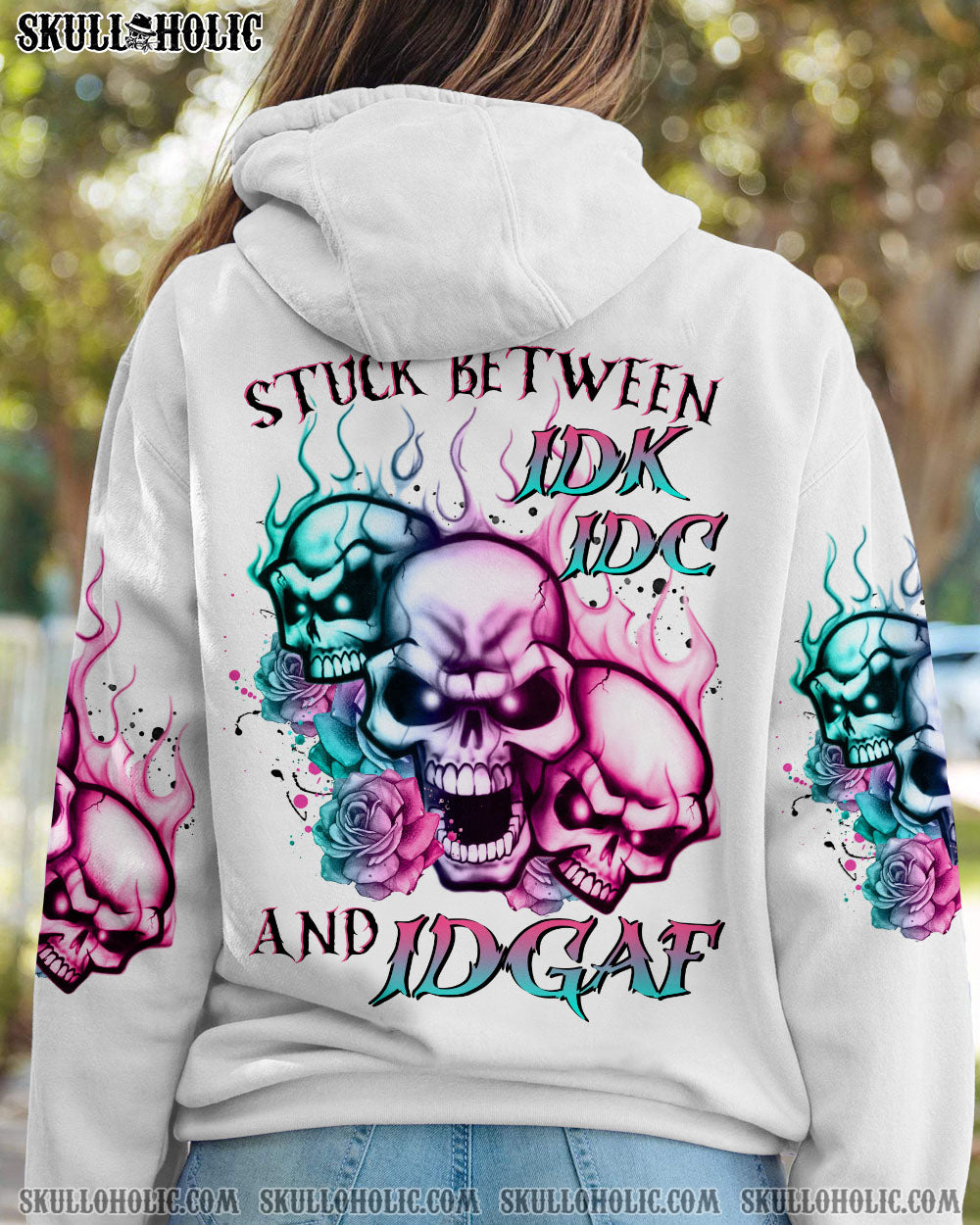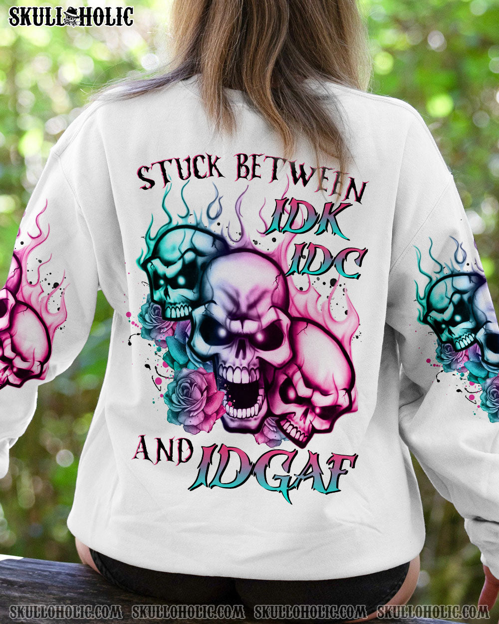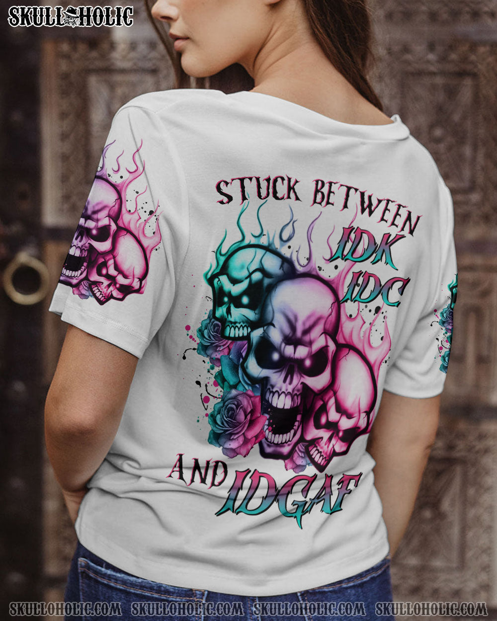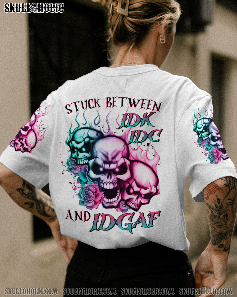 STUCK BETWEEN IDK IDC AND IDGAF FIRE SKULL ROSE ALL OVER PRINT - TLTR0304231