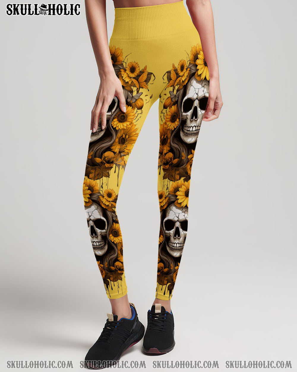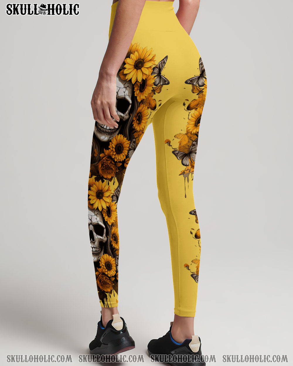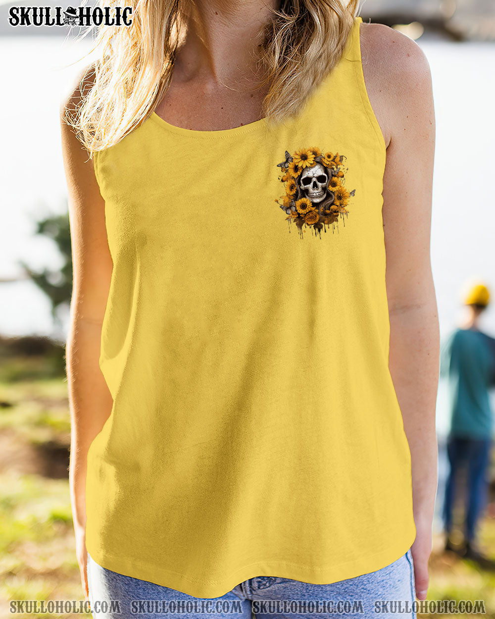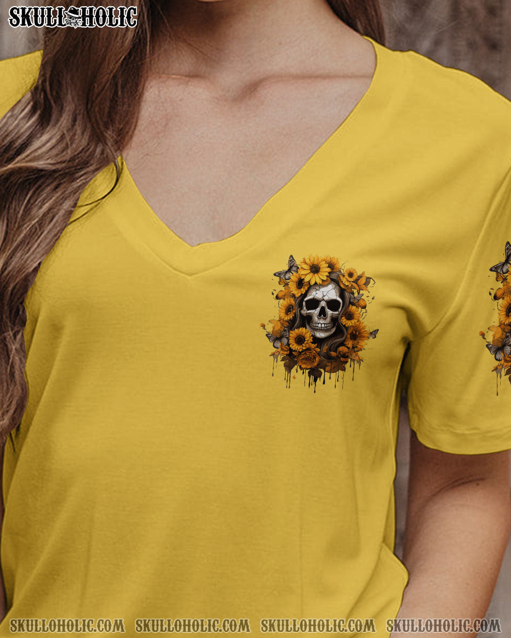 Our SUNSHINE MIXED WITH A LITTLE HURRICANE ALL OVER PRINT proudly displays a captivating interplay of nature and intensity with its intricate skull adorned with sunflowers and butterflies. This unique design stands as a symbol of the multifaceted beauty and strength of the human spirit. Show off your individual complexity with this vibrant and meaningful statement.