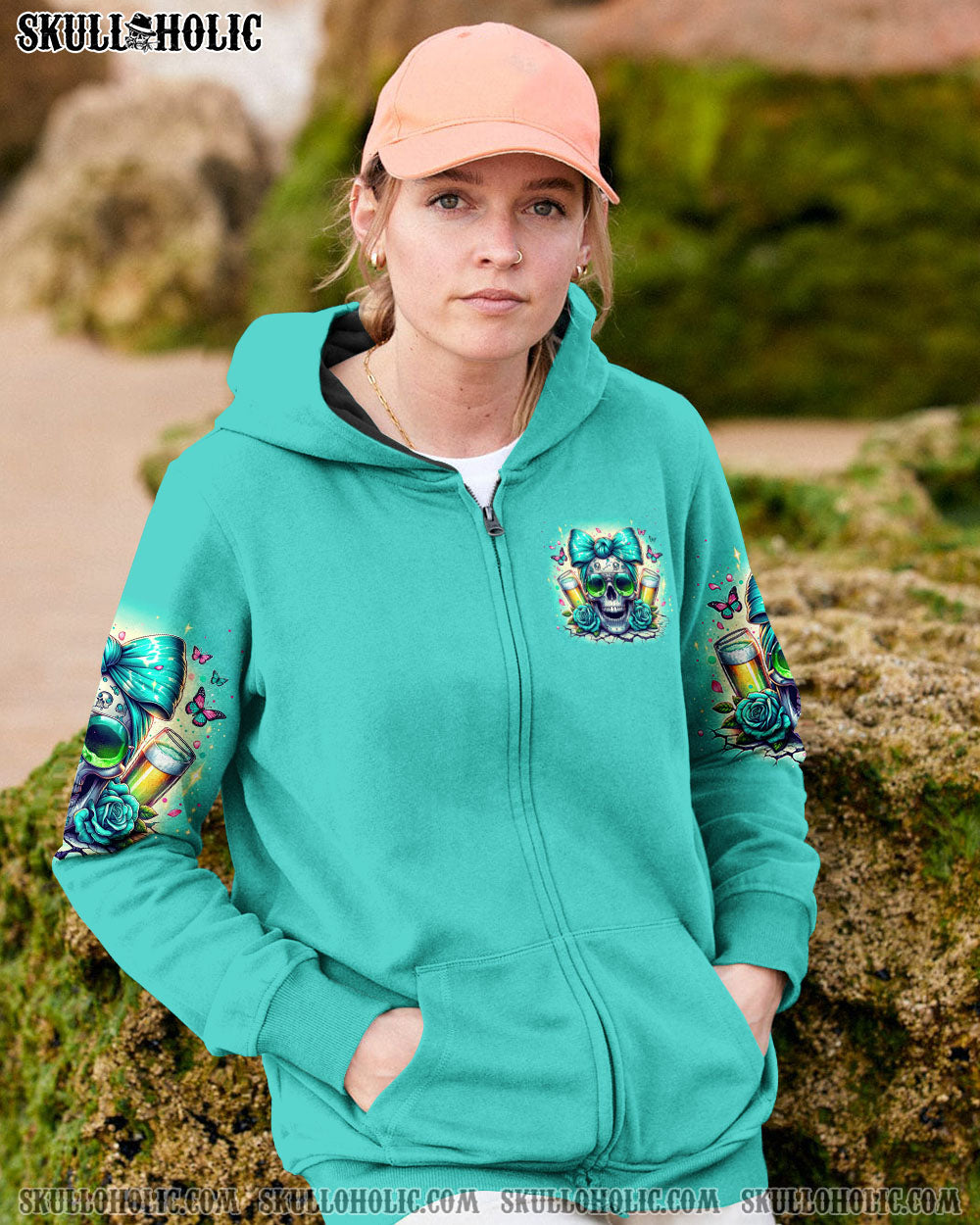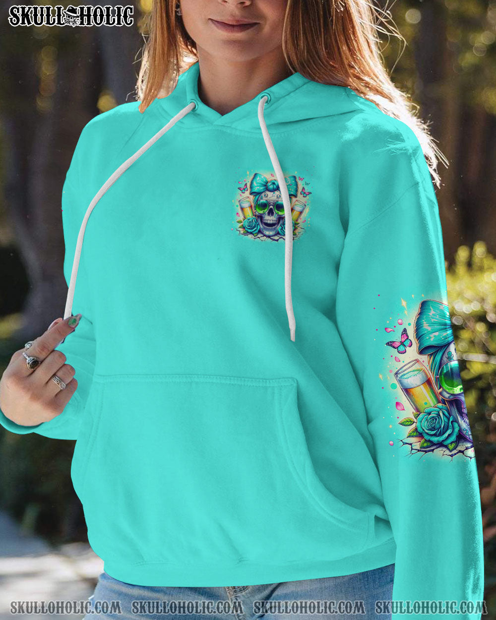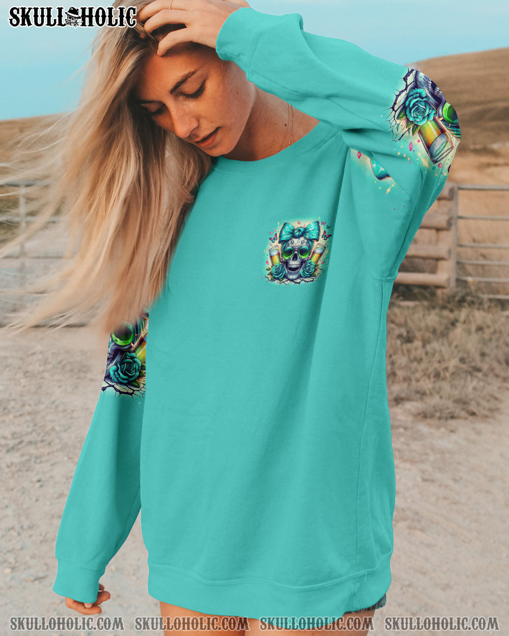 The Devil Whispered to Me All Over Print is a rebellious blend of skulls, messy buns, and trendy headbands, complemented by delicate roses and whimsical butterflies. A fearless representation of defiance, inviting you to face challenges with carefree elegance. Make a bold statement with this captivating piece. 🖤🌹🦋