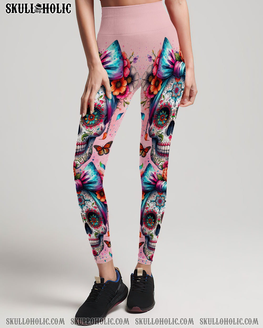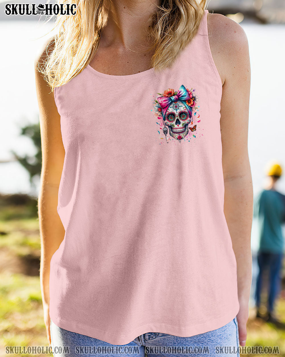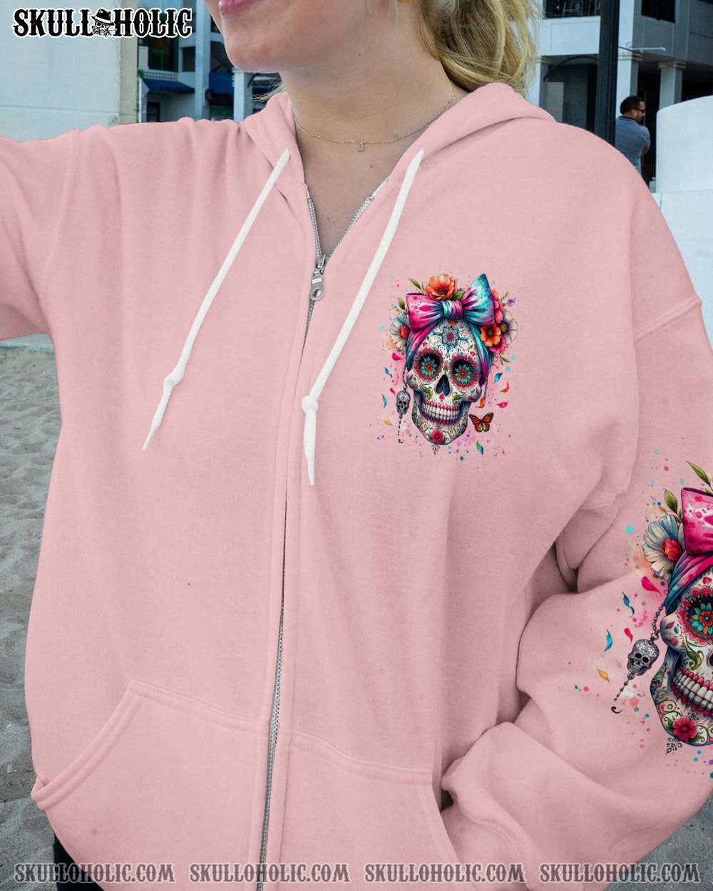 Introducing THE GOOD GIRL IN ME ALL OVER PRINT. A captivating design featuring sugar skulls, vibrant flowers, and delicate butterflies, this statement piece adds boldness and beauty to any space. Show off your individuality and artistic expression with this mesmerizing and harmonious blend, creating a visual symphony that celebrates self-expression. Make a powerful statement and elevate your surroundings with this unique design.