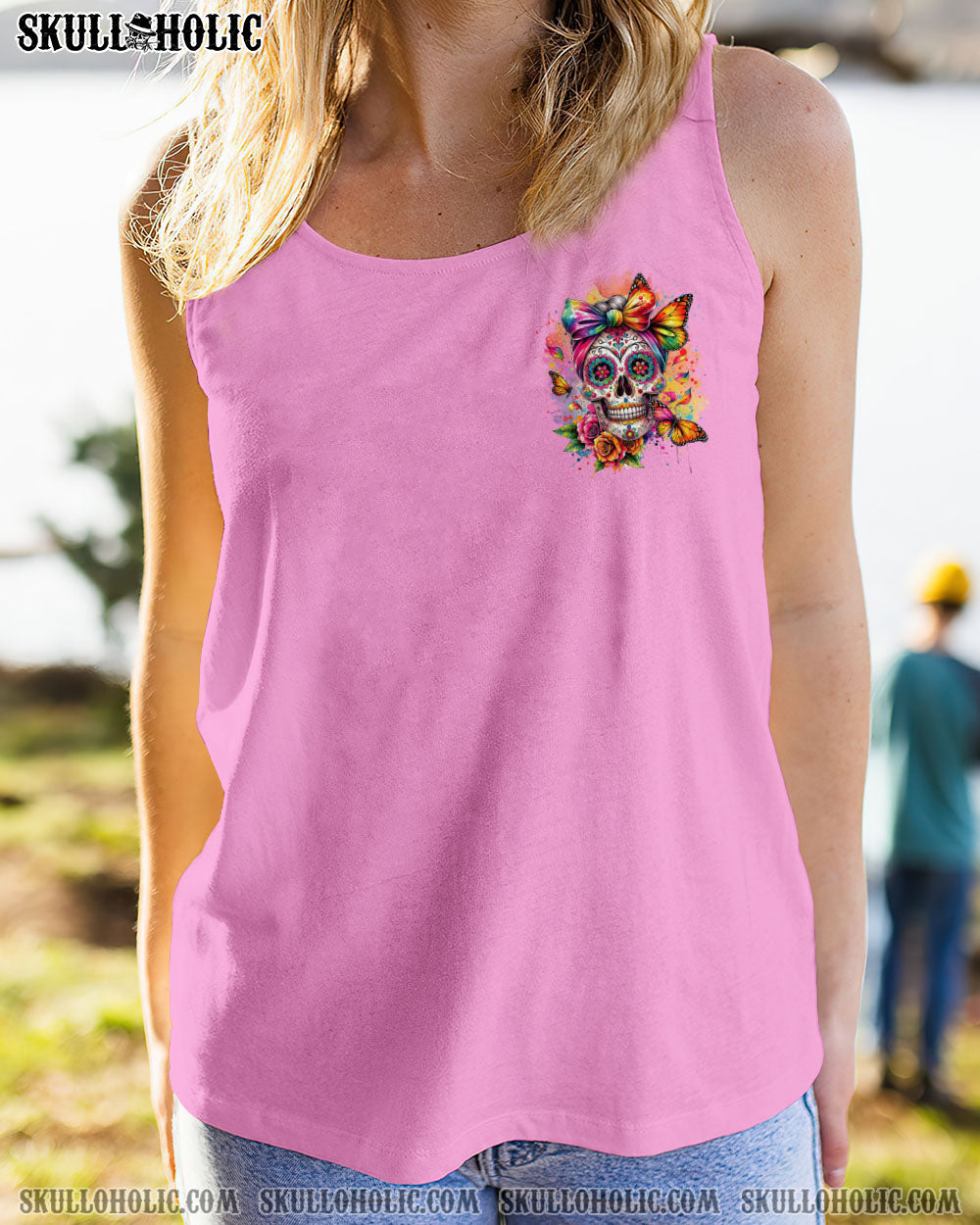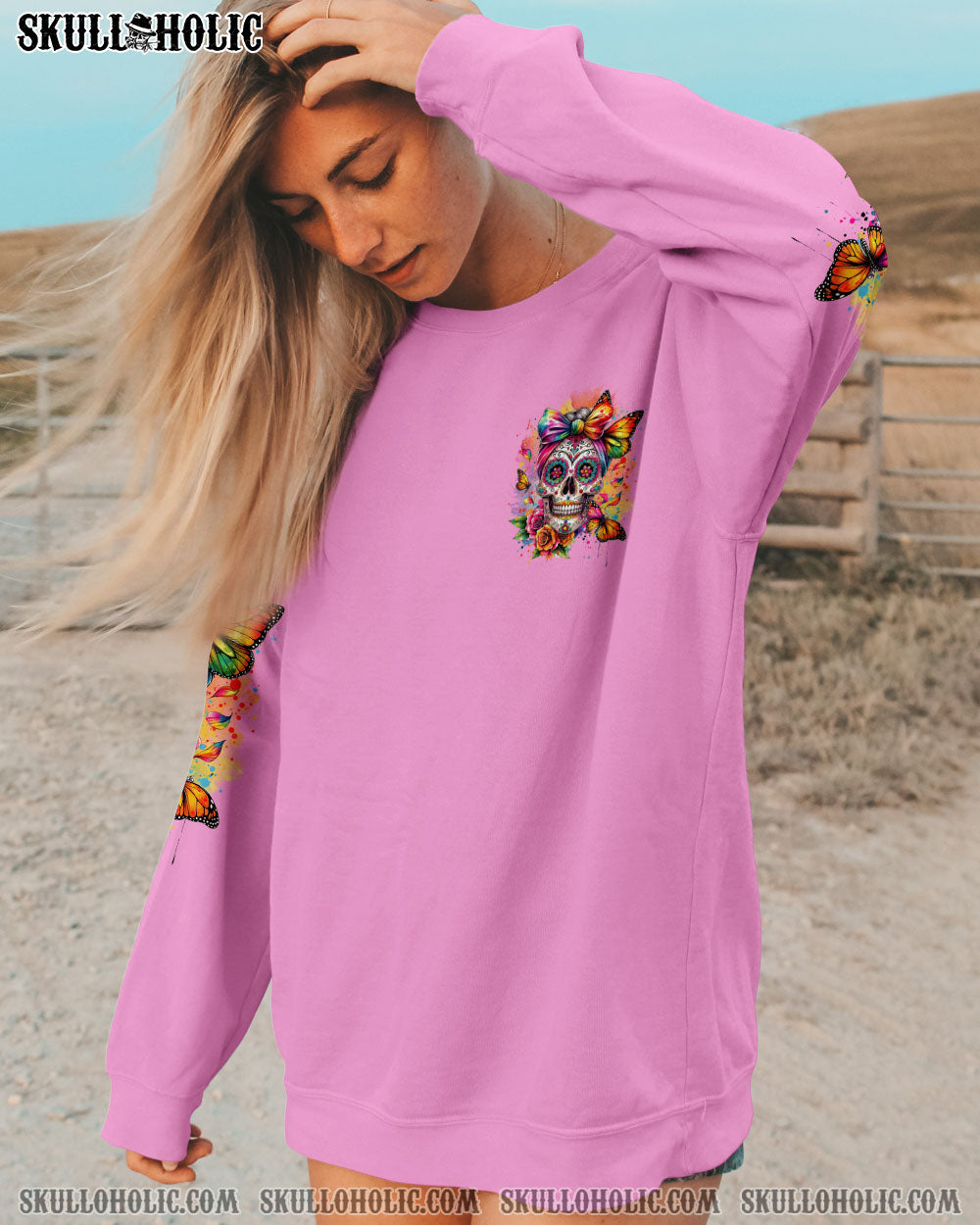 Dive into our vibrant design—a blend of sugar skulls, blossoming flowers, and delicate butterflies, complemented by a compelling quote. This striking composition celebrates bold individuality and creative expression. Make this unique design yours to add vibrancy and beauty to your space, showcasing your distinctive style. Seize the opportunity now!