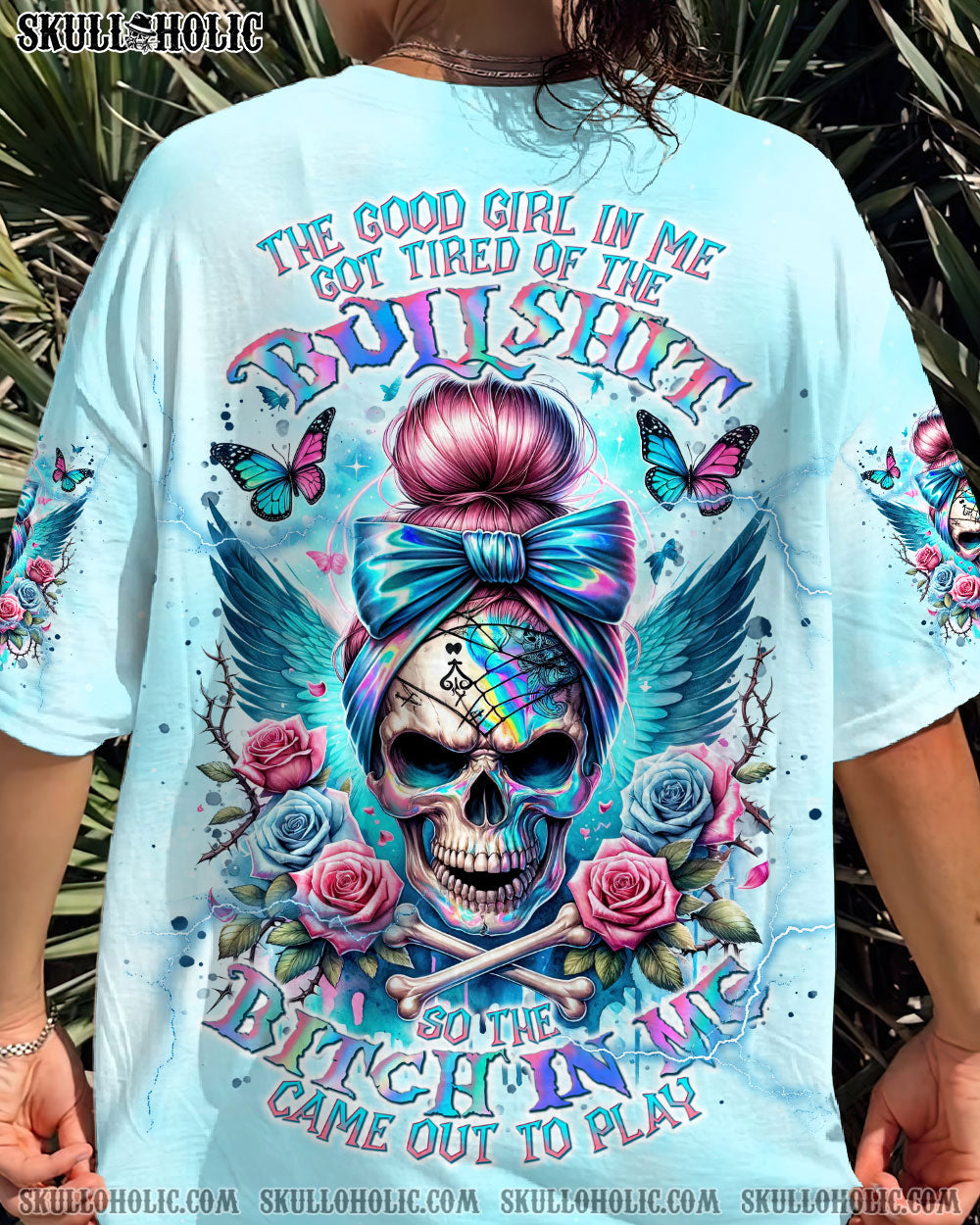 Let your rebellious spirit shine with our skull messy bun tie-dye headband adorned with elegant roses and graceful butterflies. Embrace your true essence and break free from societal norms with this bold statement piece. Feel confident and empowered as you carve your own path with the Good Girl in Me. 🌹🦋🖤