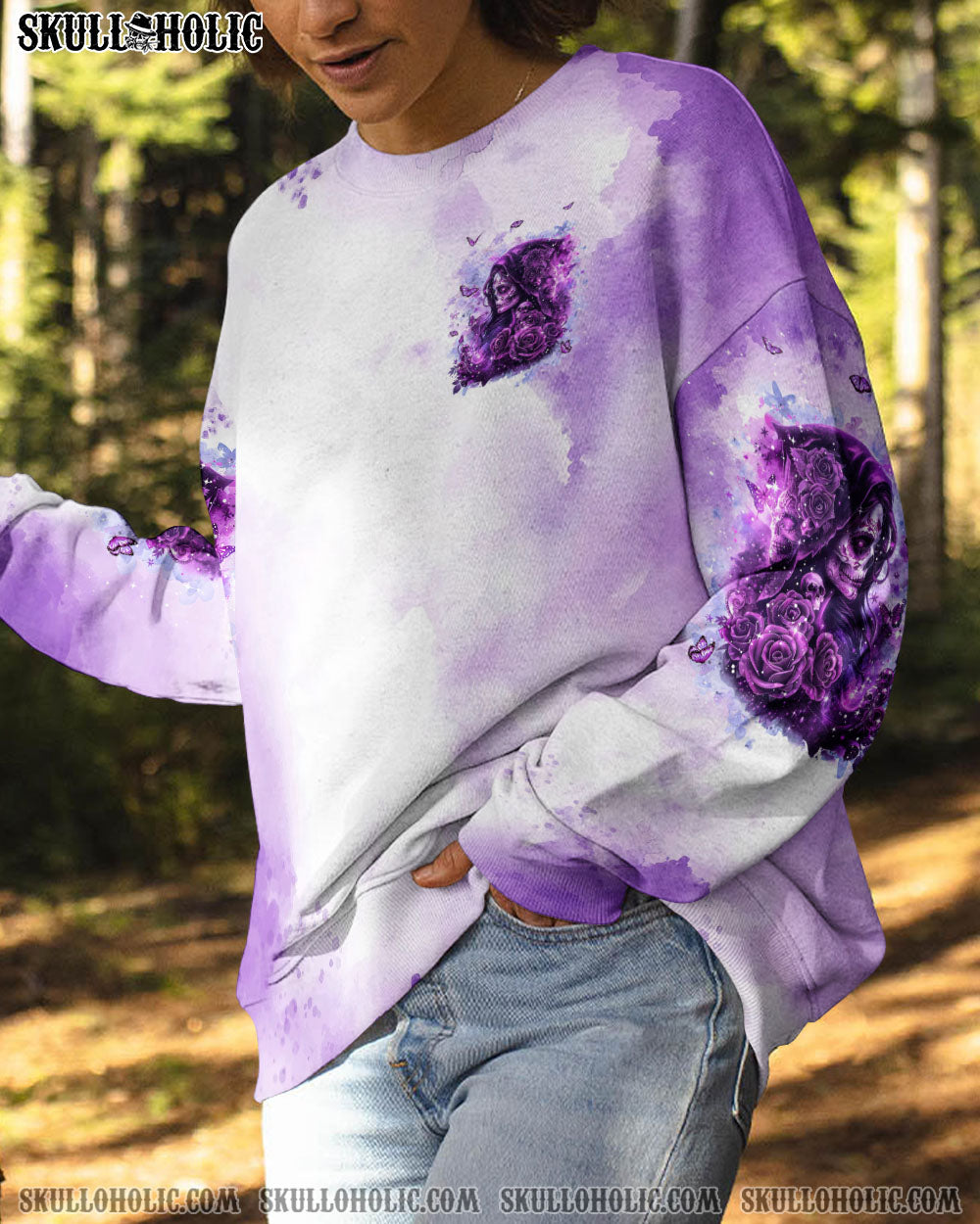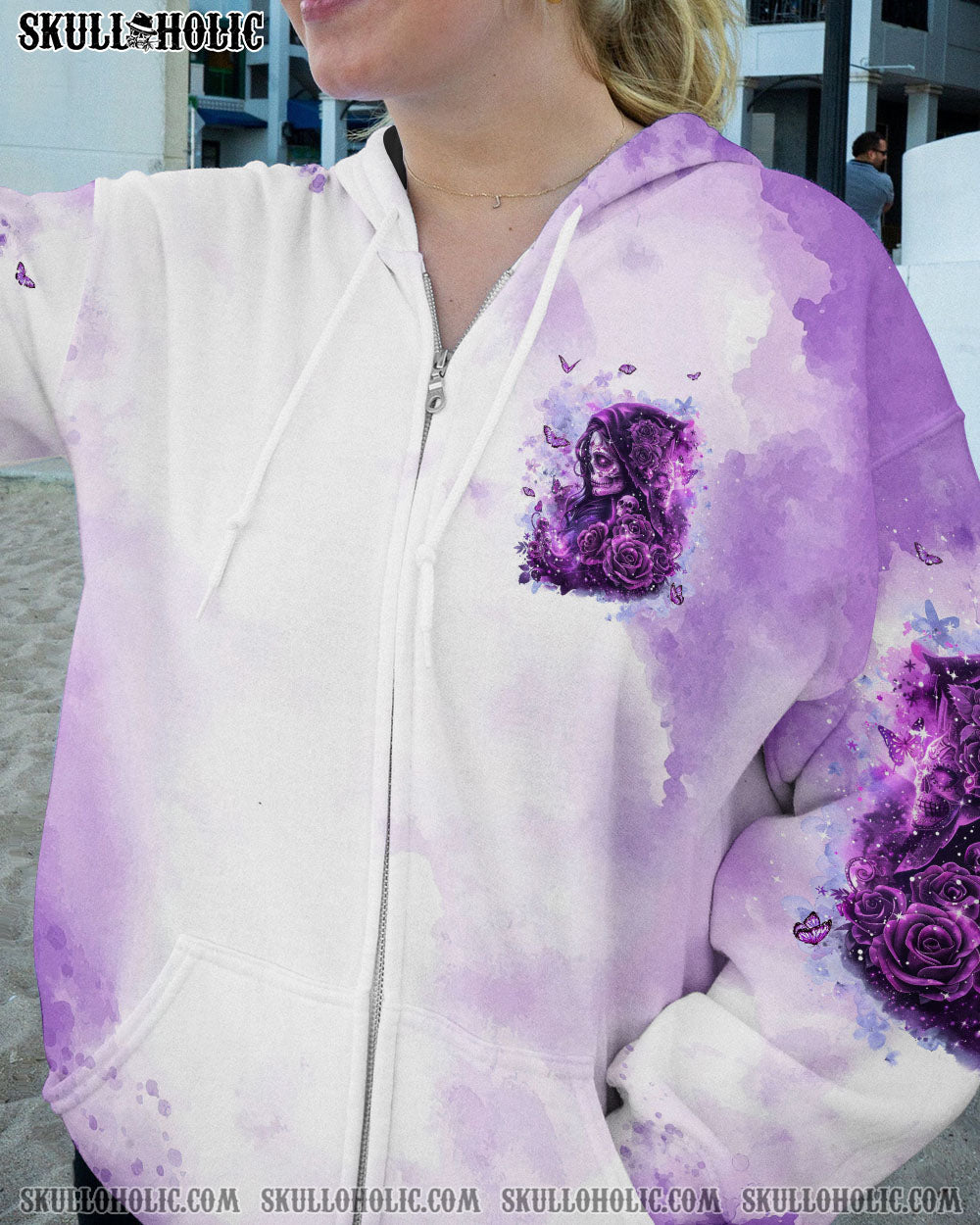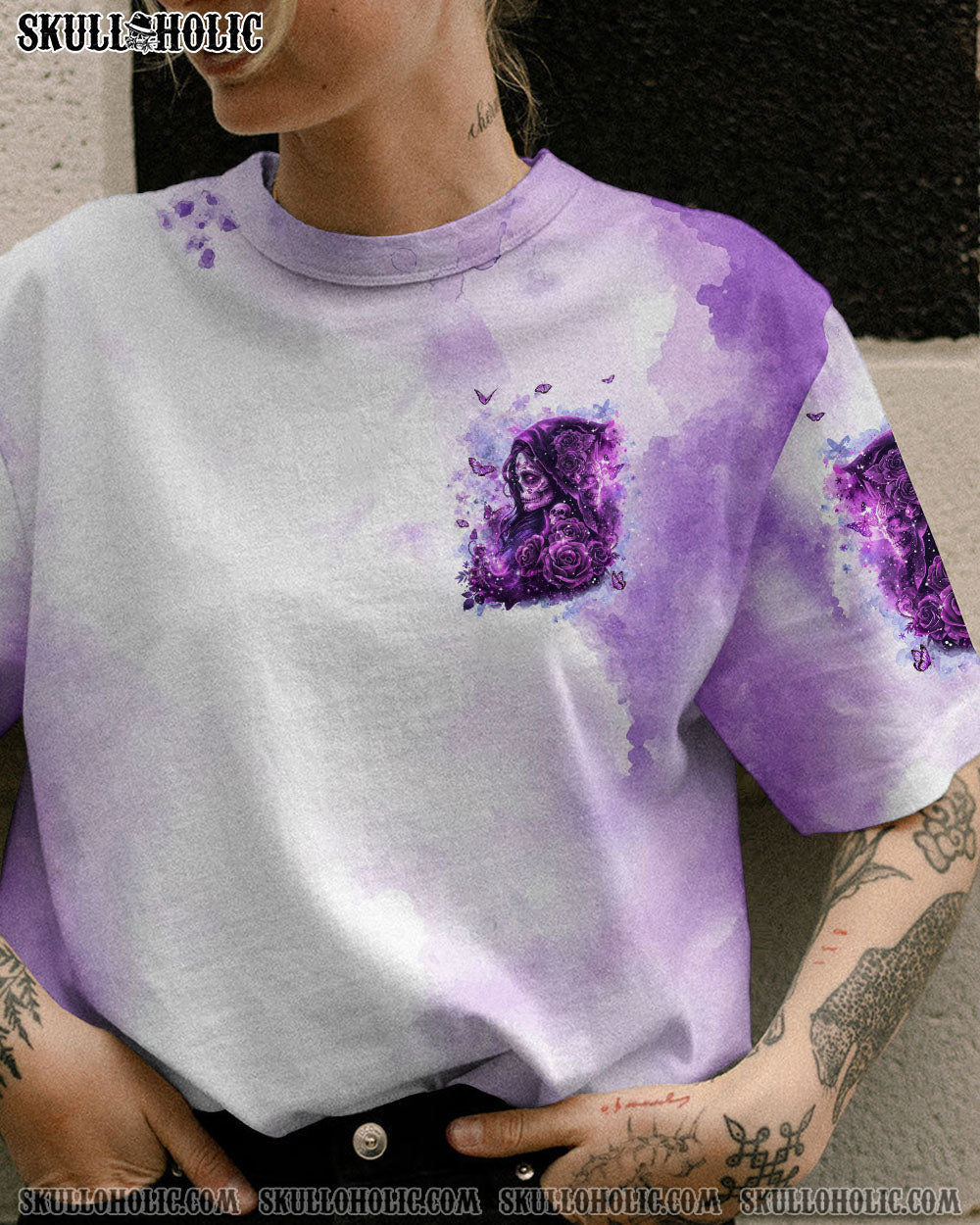 Unleash your inner strength with our enchanting “The Good Girl in Me Skull Lady” all-over print. Adorned with mystical purple roses, this design symbolizes resilience and empowerment, refusing to tolerate deception and injustice. Embrace the delicate balance between sweetness and assertiveness to unleash your true power within.