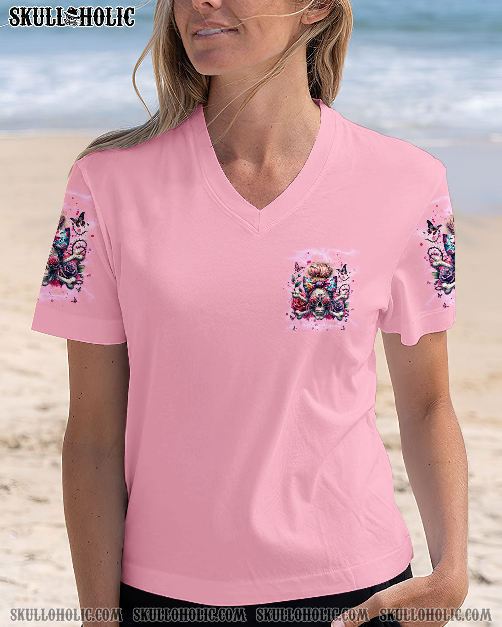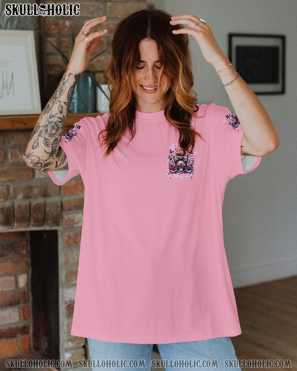 The Good Girl In Me Skull Messy Bun All Over Print captures the essence of empowerment and authenticity with its fierce design featuring a skull and ghostly rose. This design celebrates the strength of standing up for oneself and rejecting societal norms. Let this powerful design inspire you to express your individuality and unleash your inner badass.