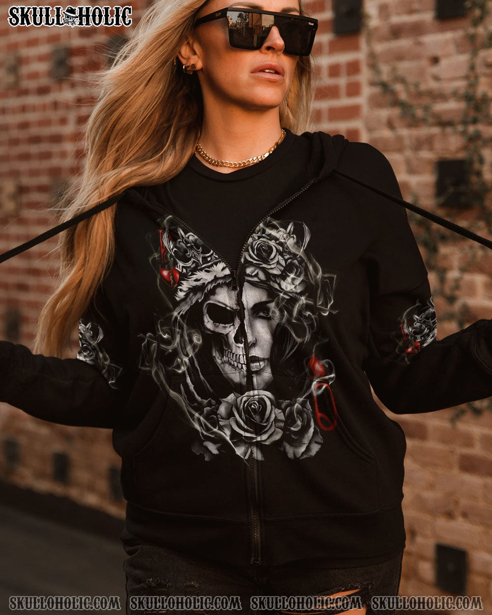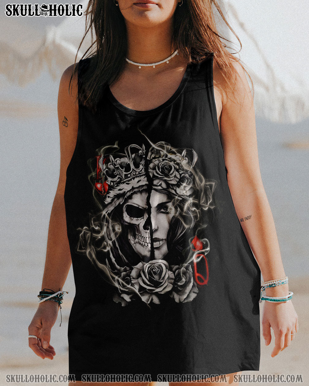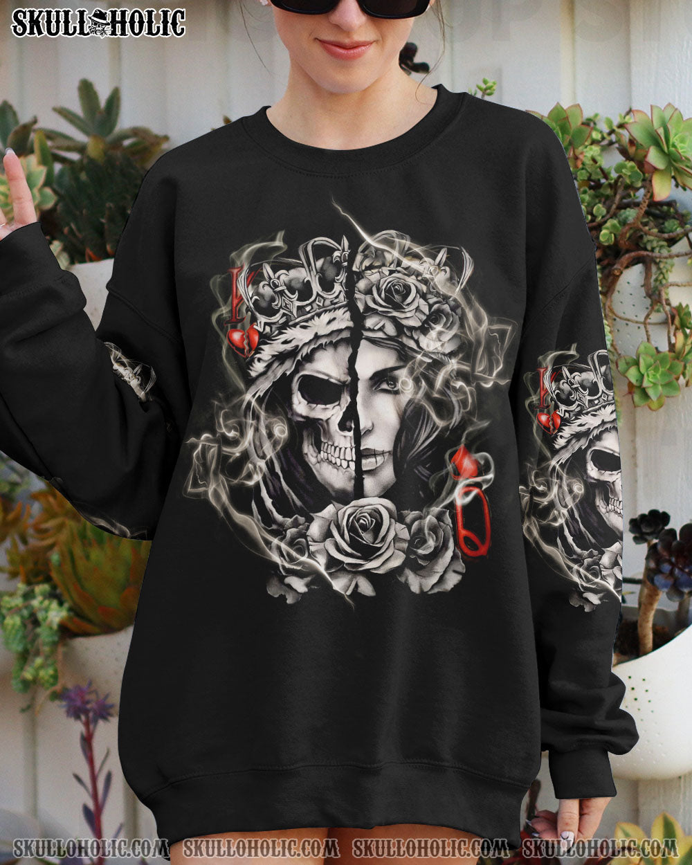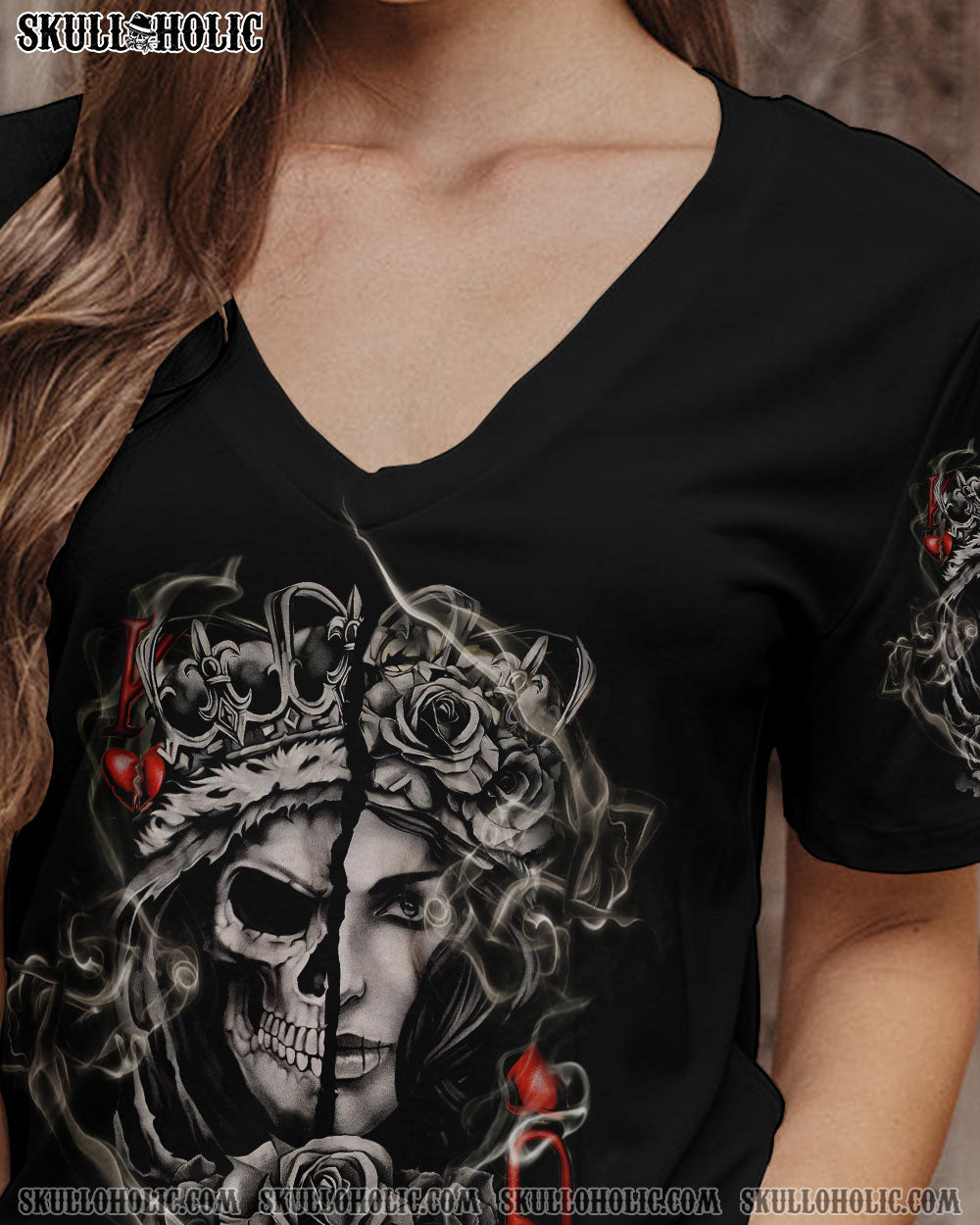Make a statement with our design. Featuring a skull king queen design and vintage ghost smoke, this design captures strength and respect. Show the world that you won’t be belittled or disrespected and demand the respect you deserve. Put your power on display with our all-over print.