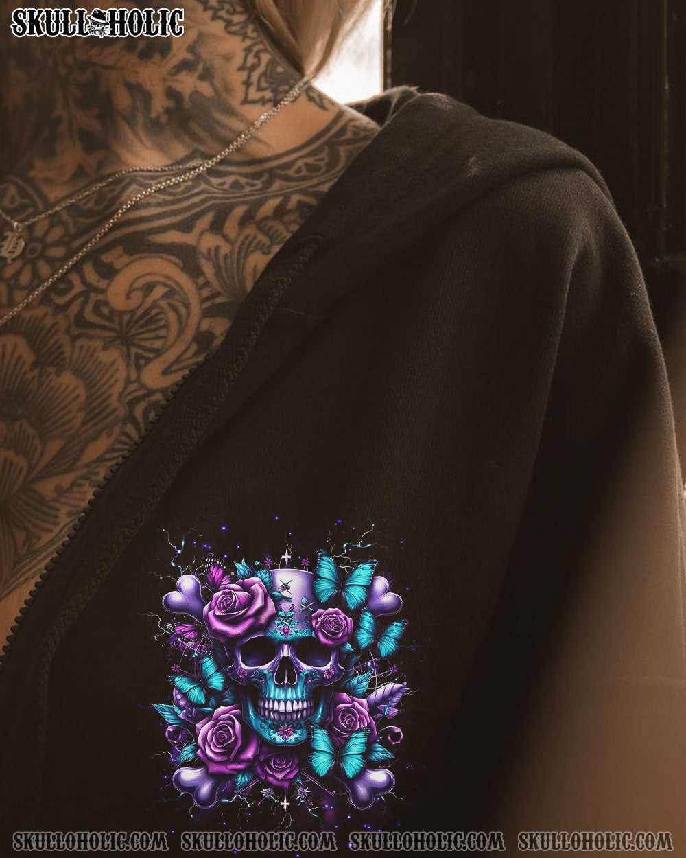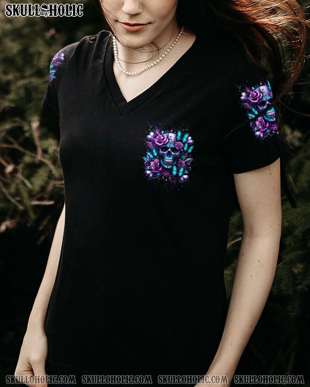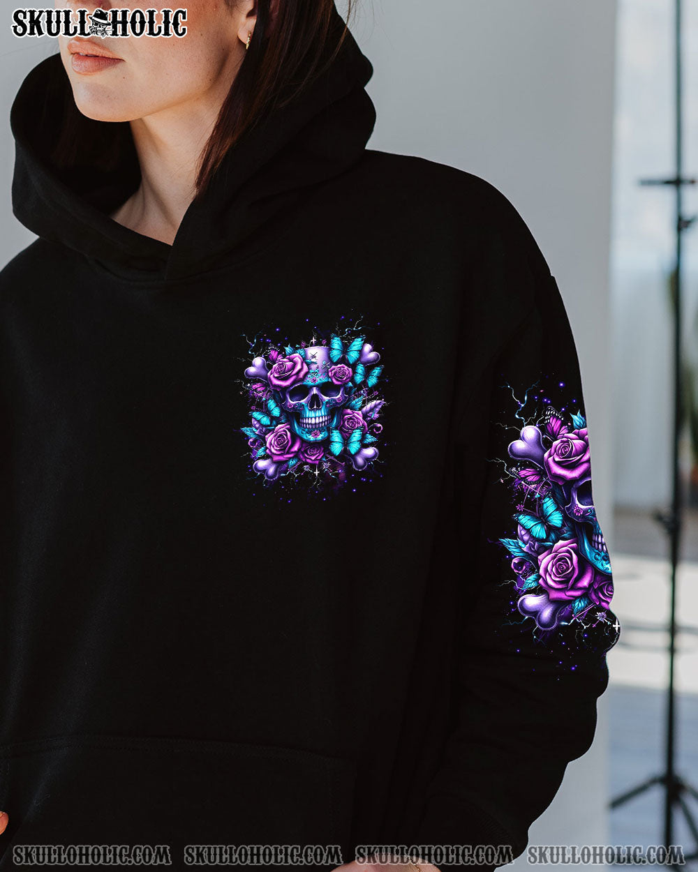 Embrace your inner strength with our Glowing Skull Design. Radiant skull with roses and butterflies exudes resilience. Quote “Warning: This Tattooed Girl Does Not Play Well With Stupid People” adds sassy charm. Make a powerful statement with this design, proudly showcasing your independence and no-nonsense attitude.