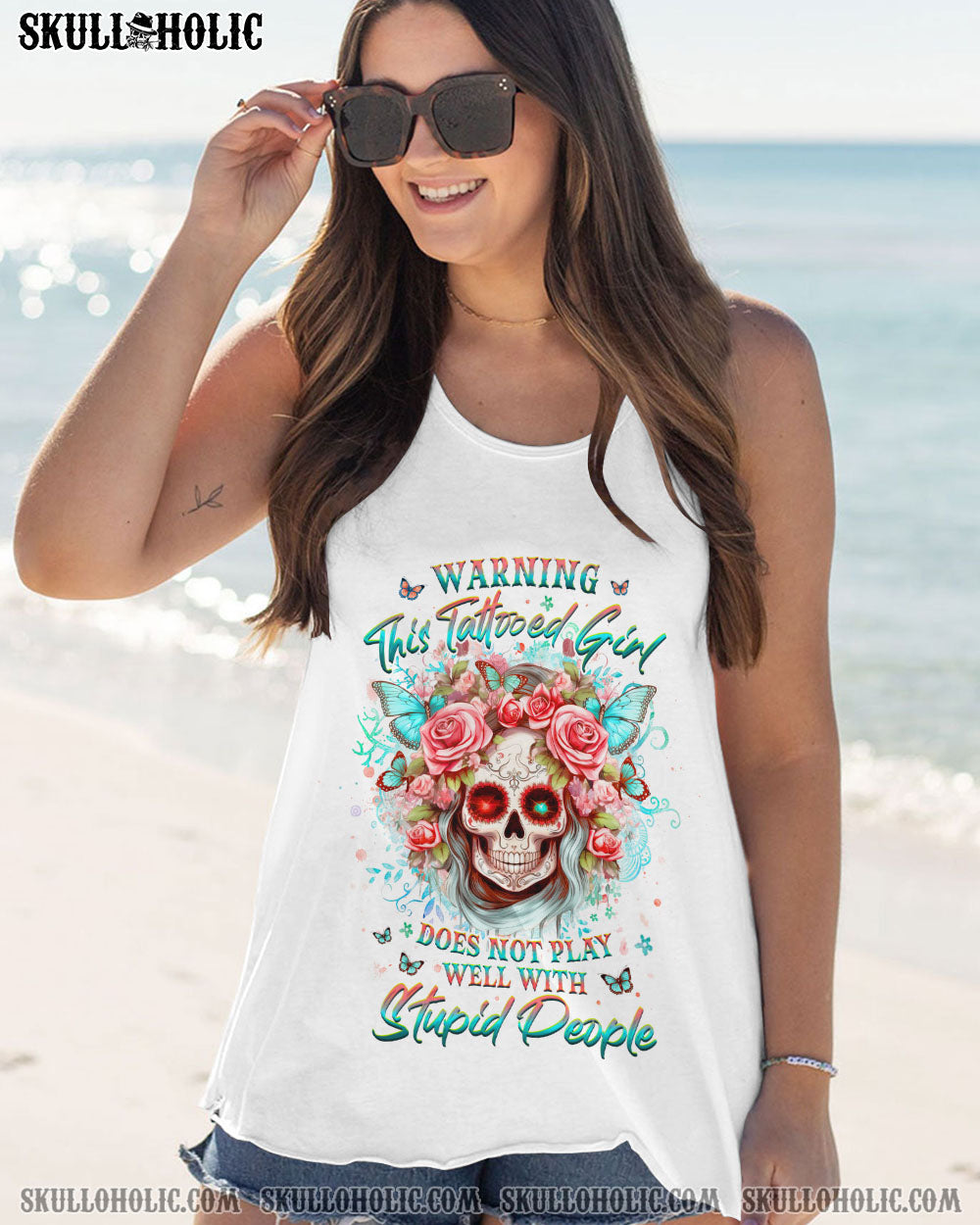 Introducing our captivating design that embraces the bold and fearless spirit of individuality. This design represents empowerment, self-expression, and the unapologetic celebration of uniqueness. With the assertive quote, “Warning: This tattooed girl does not play well with stupid people,” it boldly communicates your willingness to stand up for yourself and set boundaries. Let this design serve as a symbol of your strength, authenticity, and refusal to tolerate ignorance. Embrace your tattoos, fearlessly express yourself, and make a statement challenging the status quo with grace and style.