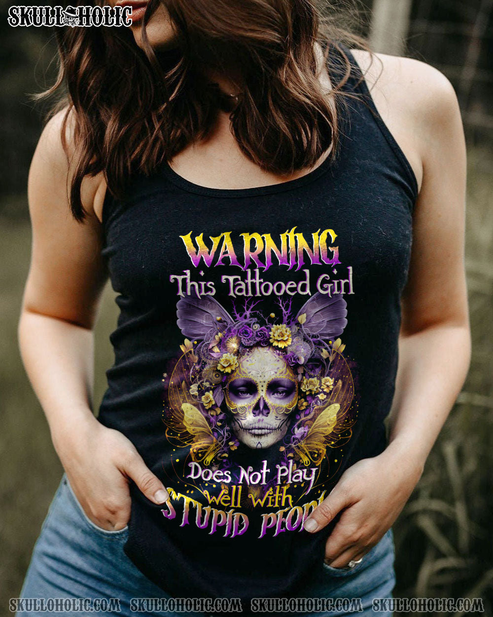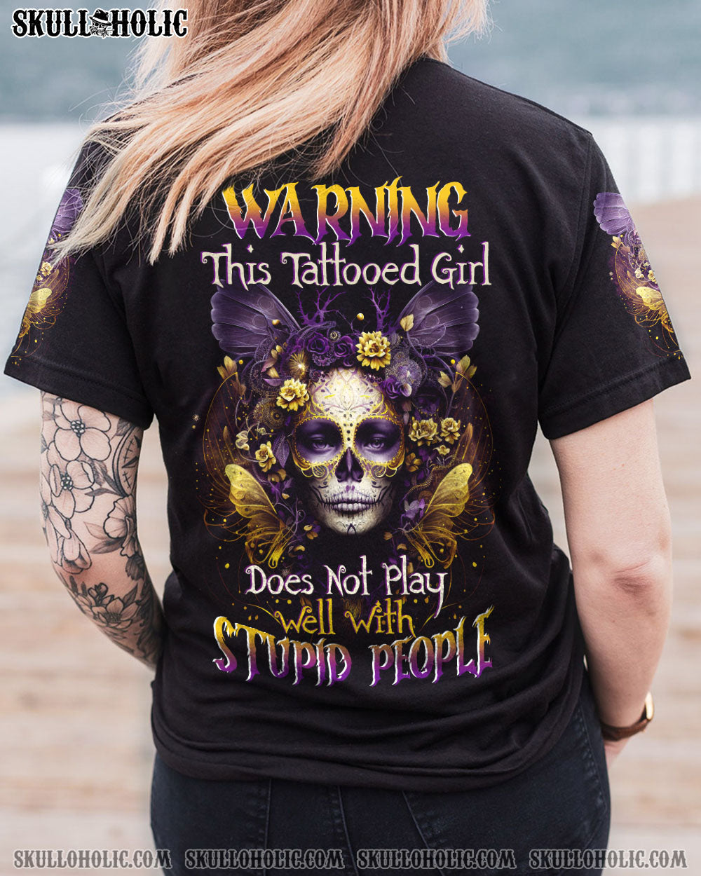 WARNING THIS TATTOOED GIRL SUGAR SKULL ALL OVER PRINT - TLTW0404234