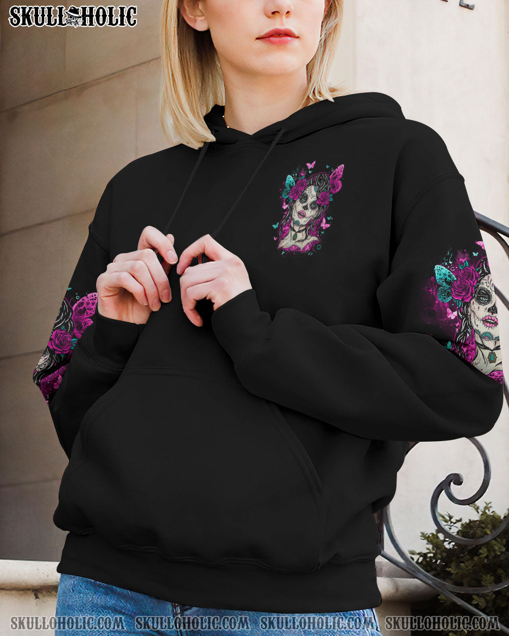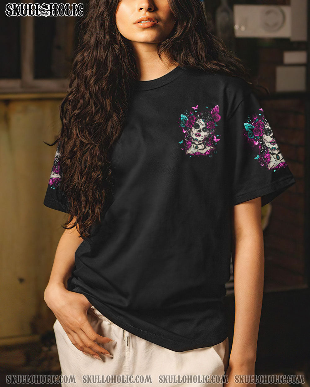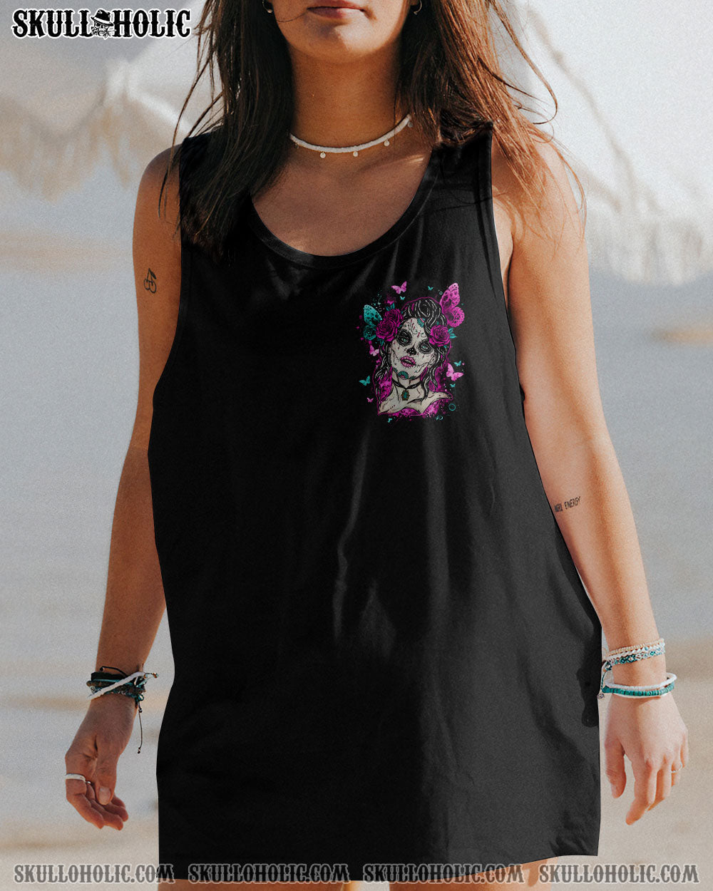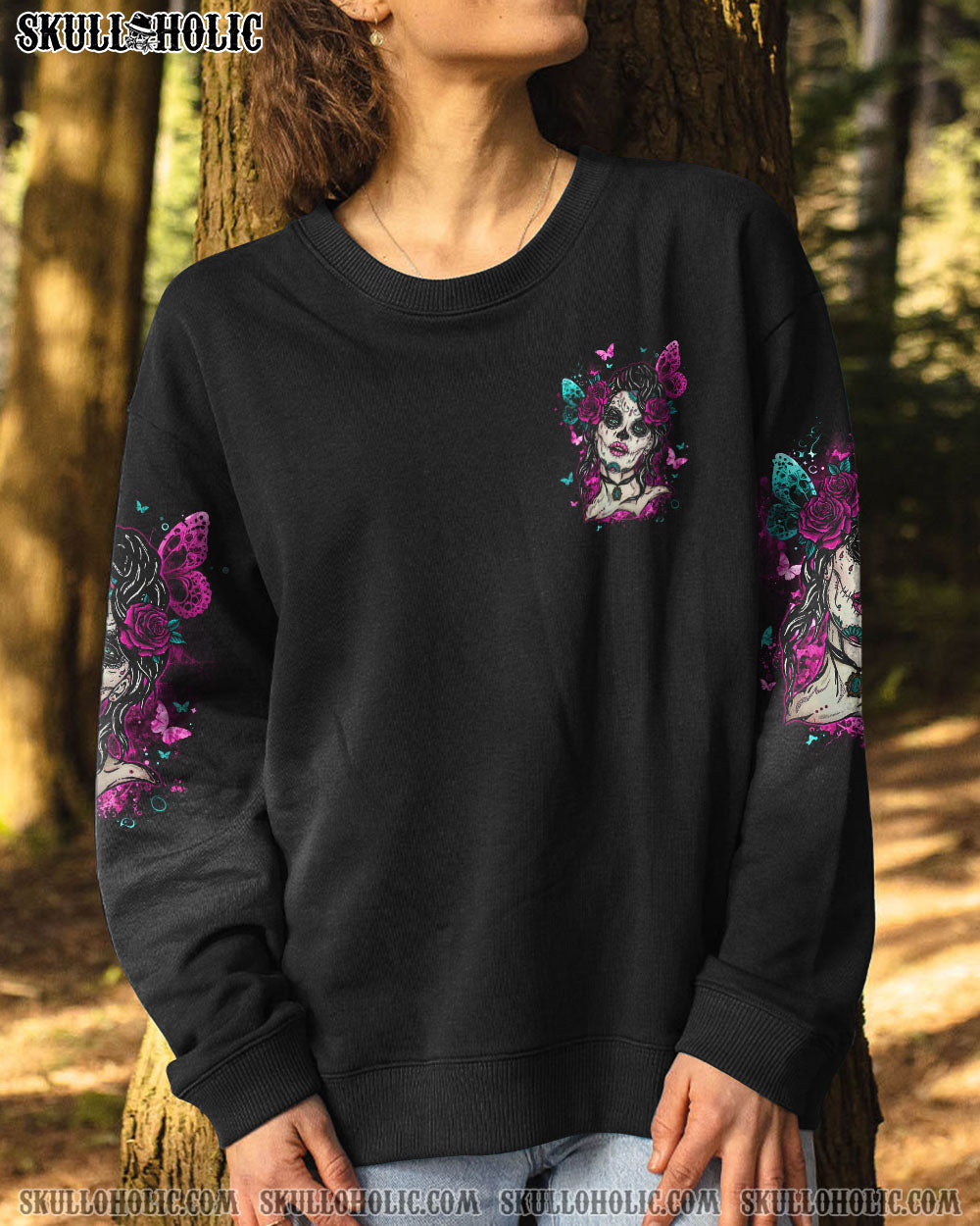 Show off your strength and confidence with this edgy but feminine design. Featuring a skull-and-butterfly image with beautiful roses, our design will help you stand out and be proud of who you are. Show the world that you don’t need anyone else’s approval.
