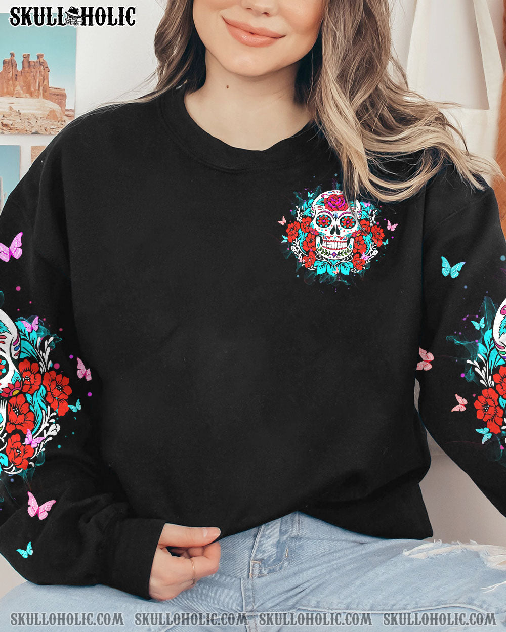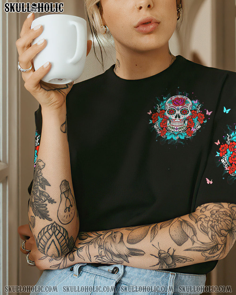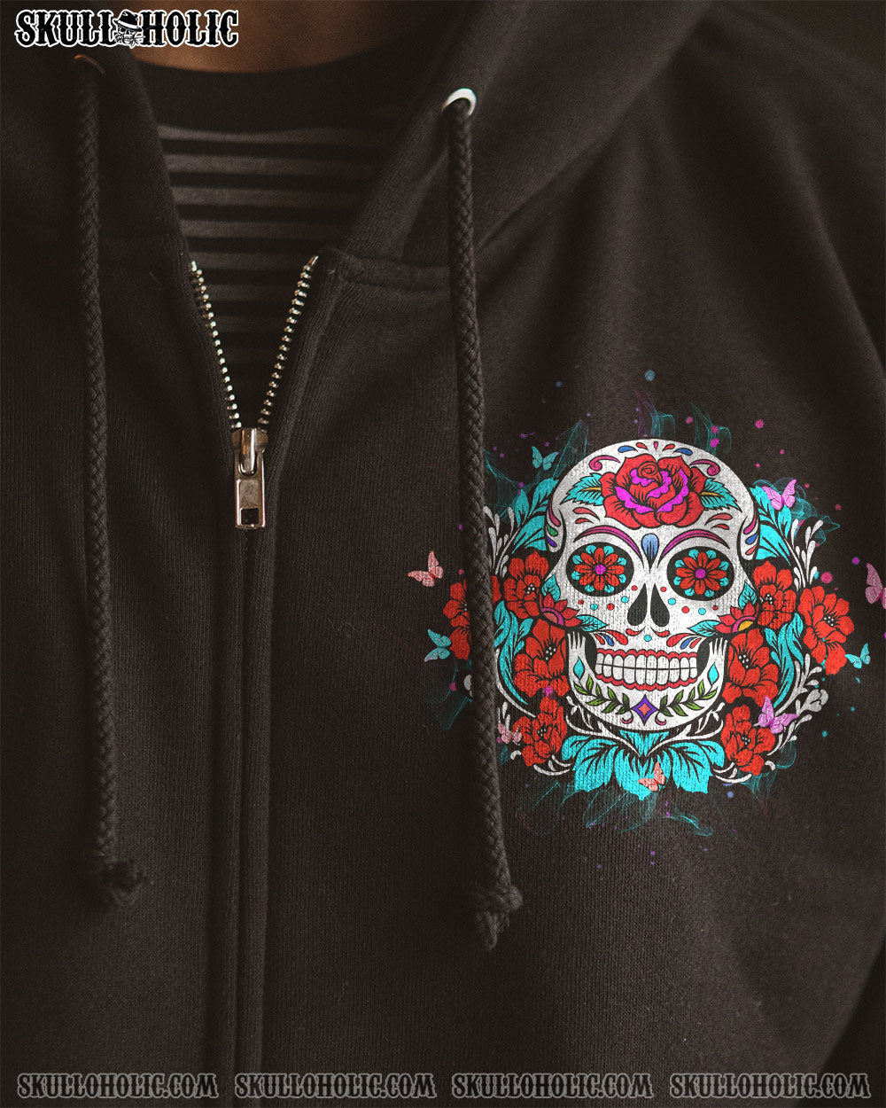 Introducing our bold and daring design, a statement piece that is guaranteed to turn heads wherever you go. Featuring a striking sugar skull set against a beautiful floral background, this design is not only visually stunning but also represents strength and resilience. With an empowering quote, this design is the perfect way to show the world that you’re a force to be reckoned with. Whether you’re dressing up for a night out or keeping it casual, this design will help you make a statement and stand out from the crowd. So why wait? Add this must-have piece to your collection today and show the world that you’re a powerful and unstoppable force!