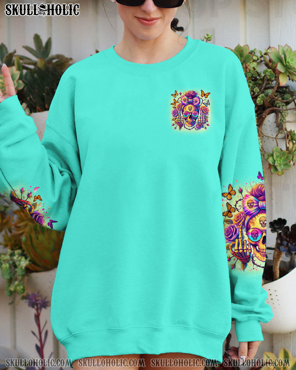 YOU COULDN'T HANDLE ME MESSY BUN SKULL ALL OVER PRINT - TLNO2106241