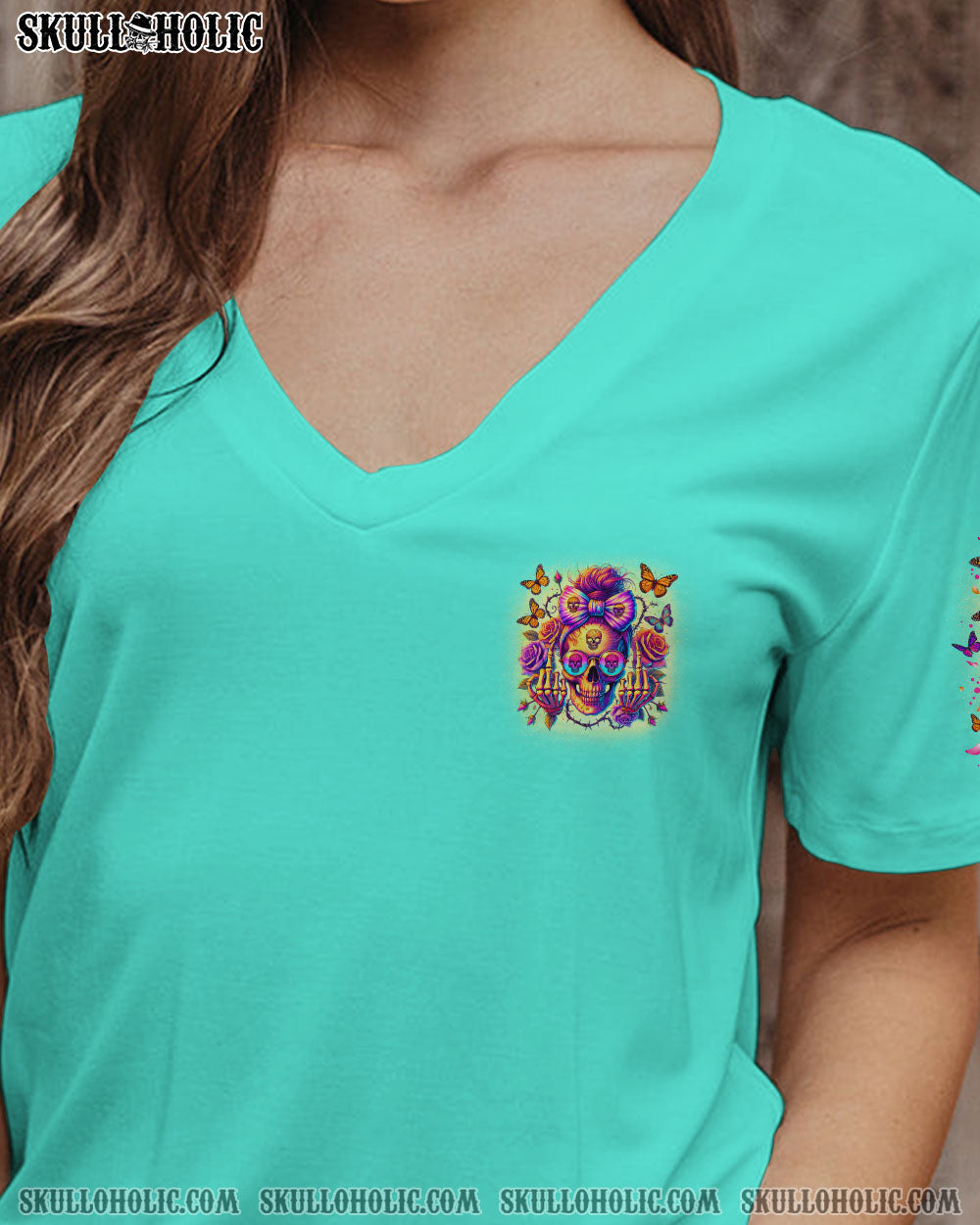 Unleash your individuality with our YOU COULDN’T HANDLE ME MESSY BUN SKULL ALL OVER PRINT. Vibrant colors and bold design celebrate your dynamic personality, while challenging others to embrace their own uniqueness. Embrace the unexpected and stand out with our edgy and artistic collection.