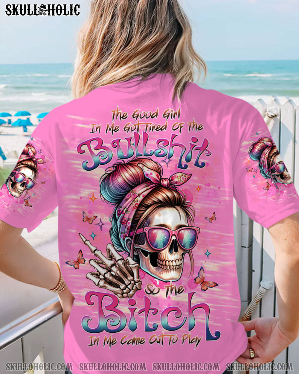Embrace your inner royalty with this stunning all-over print. Featuring a skull adorned with a crown, elegant roses, and delicate butterflies, it celebrates strength, independence, and self-love. Perfect for those who know their worth, it showcases your confidence and power with grace and fierceness. Rule your own realm with this statement piece and show that true queens need no kings to reign supreme.