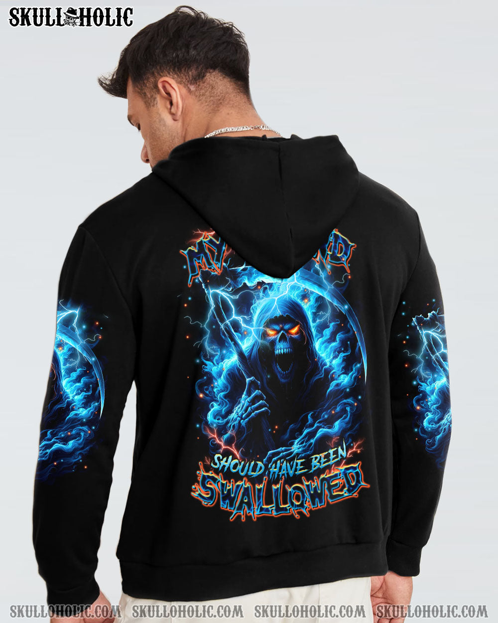 Introducing our unique smoke reaper design featuring a striking pair of eyes full of fury. Get the message “you my friend should have been swallowed” printed on a garment, to remind yourself of the consequences of negative behavior. Experience an intense and eye-catching all over print, perfect for making a statement.