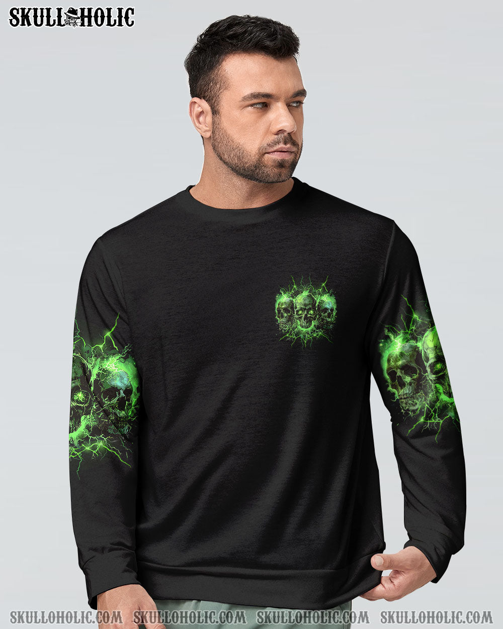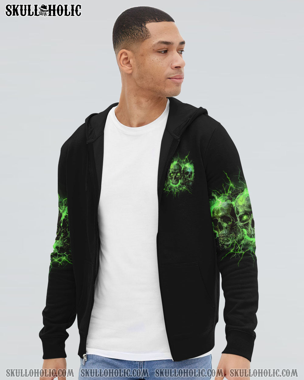 Unleash the extraordinary with our standout all over print design. Captivating skulls meet powerful thunder and the evocative quote: “Your demons hide under your bed; mine hide inside my head.” A thought-provoking reminder of inner struggles and the resilience found within. Invite this unique creation into your space and start a meaningful conversation.