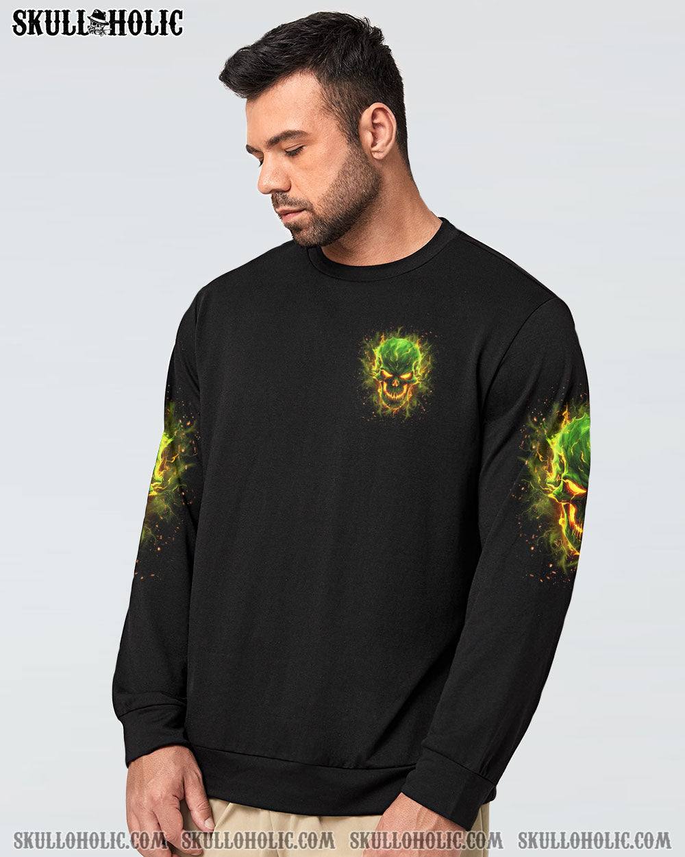 This YOUR DEMONS HIDE UNDER YOUR BED ALL OVER PRINT design is perfect for those seeking an edgy and thought-provoking statement piece. Featuring a striking green skull design with an introspective quote, this design is more than just fashion; it’s a reflection of the complexities within. Get yours today and let your art speak volumes in whispers and thunderclaps!