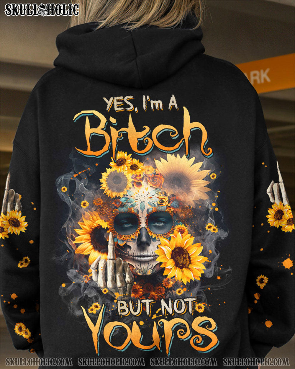 YES I’M A B BUT NOT YOURS SUNFLOWER SKULL ALL OVER PRINT – TLNZ1003234